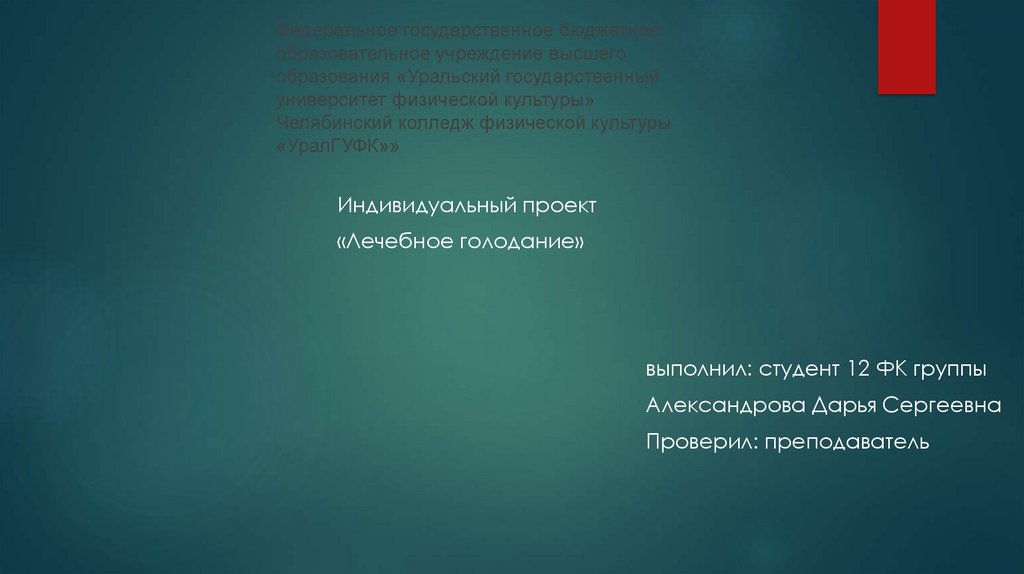 Федеральное государственное бюджетноеобразовательное учреждение высшего