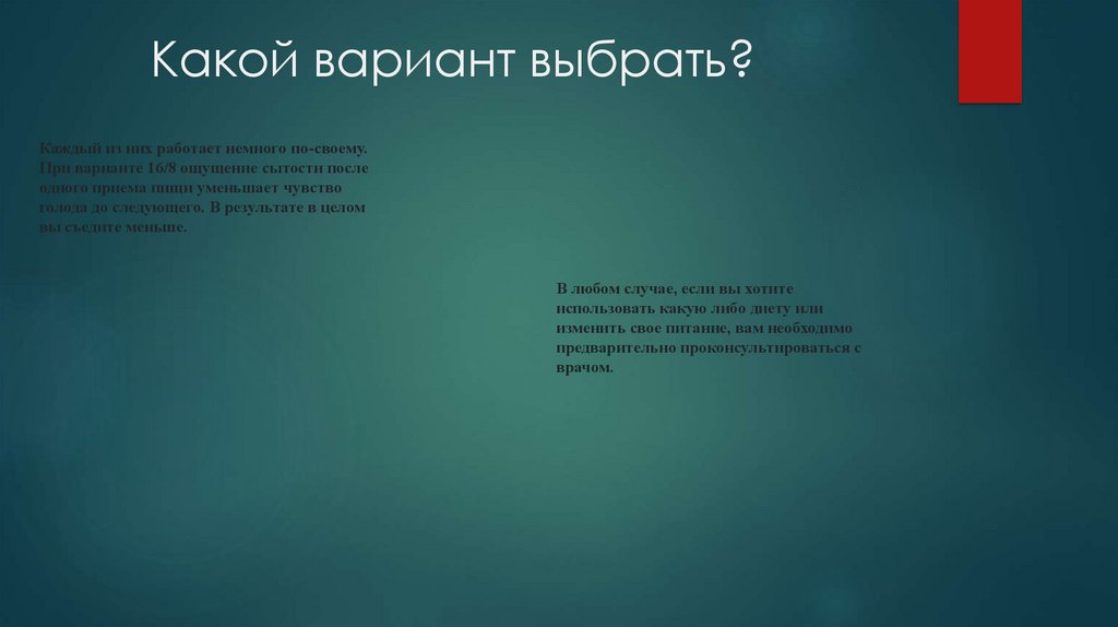При этом варианте период без еды составляет 16 часов подряд
