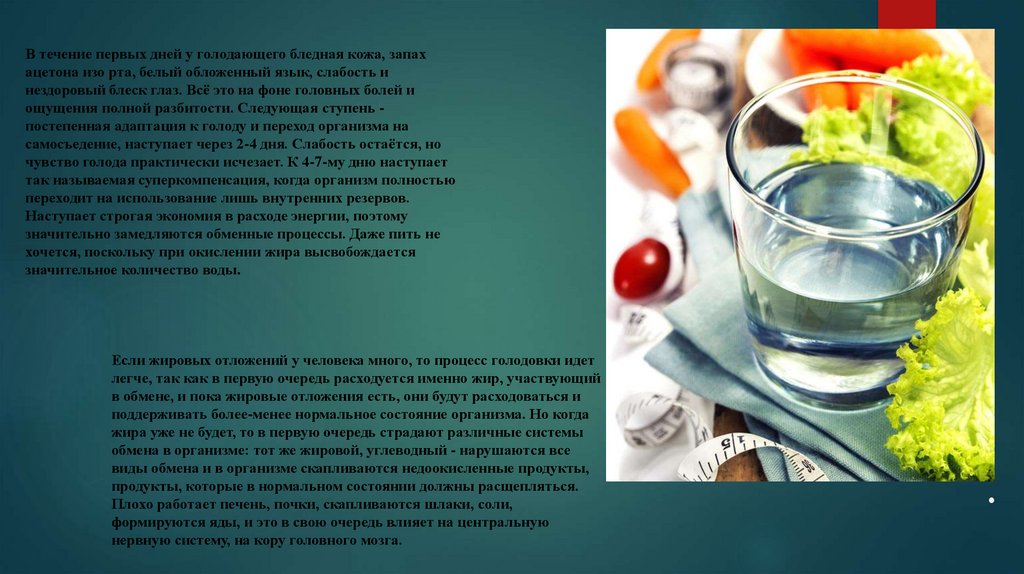 пищи и воды; начиная со 2-4-х суток приём воды