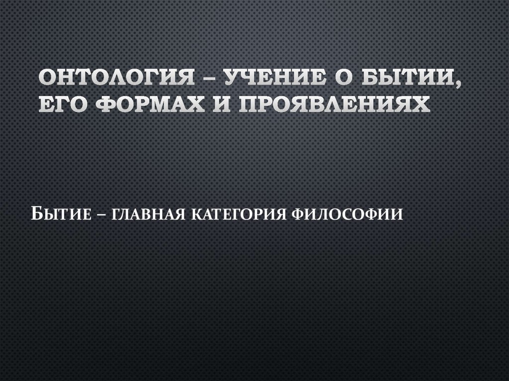 БЫТИЕ – ГЛАВНАЯ КАТЕГОРИЯ ФИЛОСОФИИ3.