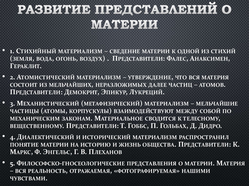 5. ФИЛОСОФСКО-ГНОСЕОЛОГИЧЕСКИЕ ПРЕДСТАВЛЕНИЯ О МАТЕРИИ. МАТЕРИЯ