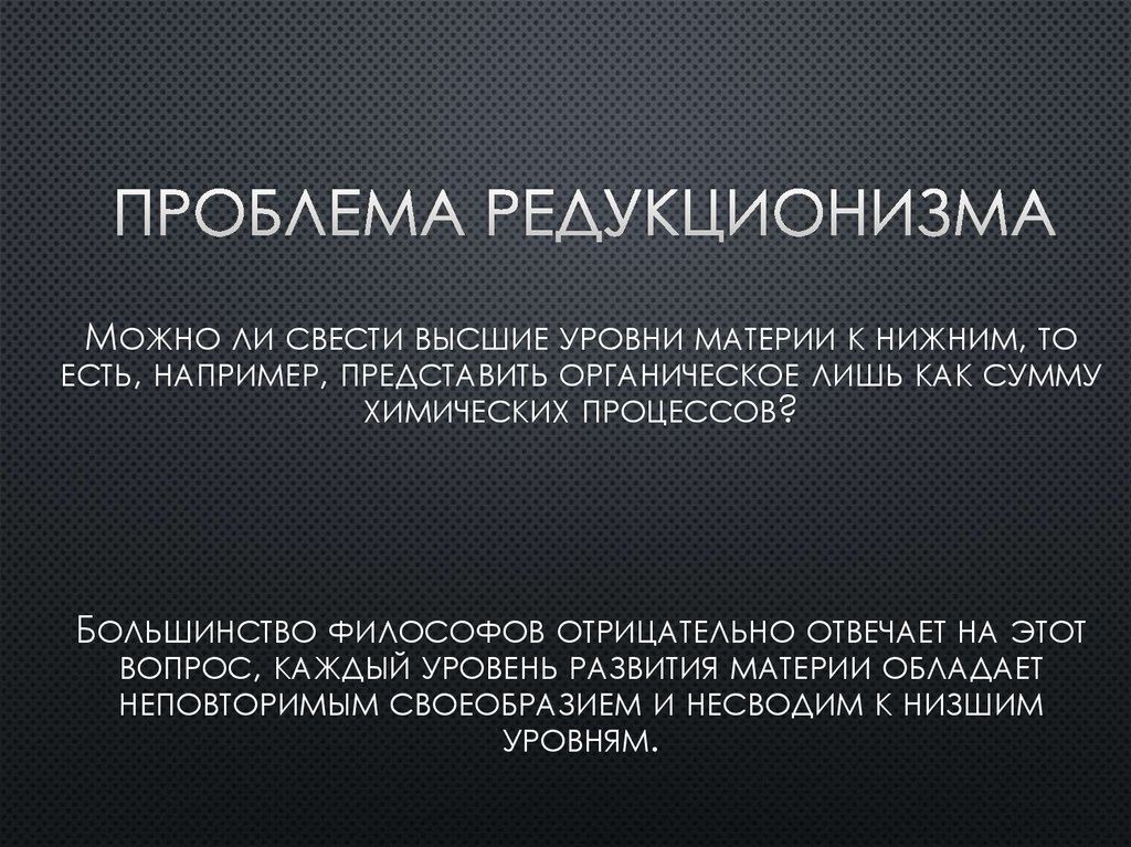 МОЖНО ЛИ СВЕСТИ ВЫСШИЕ УРОВНИ МАТЕРИИ К НИЖНИМ, ТОЕСТЬ, НАПРИМЕР, ПРЕДСТАВИТЬ ОРГАНИЧЕСКОЕ ЛИШЬ КАК СУММУ