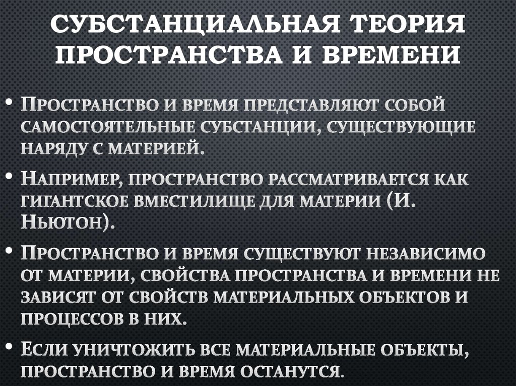 СУБСТАНЦИАЛЬНАЯ ТЕОРИЯПРОСТРАНСТВА И ВРЕМЕНИ