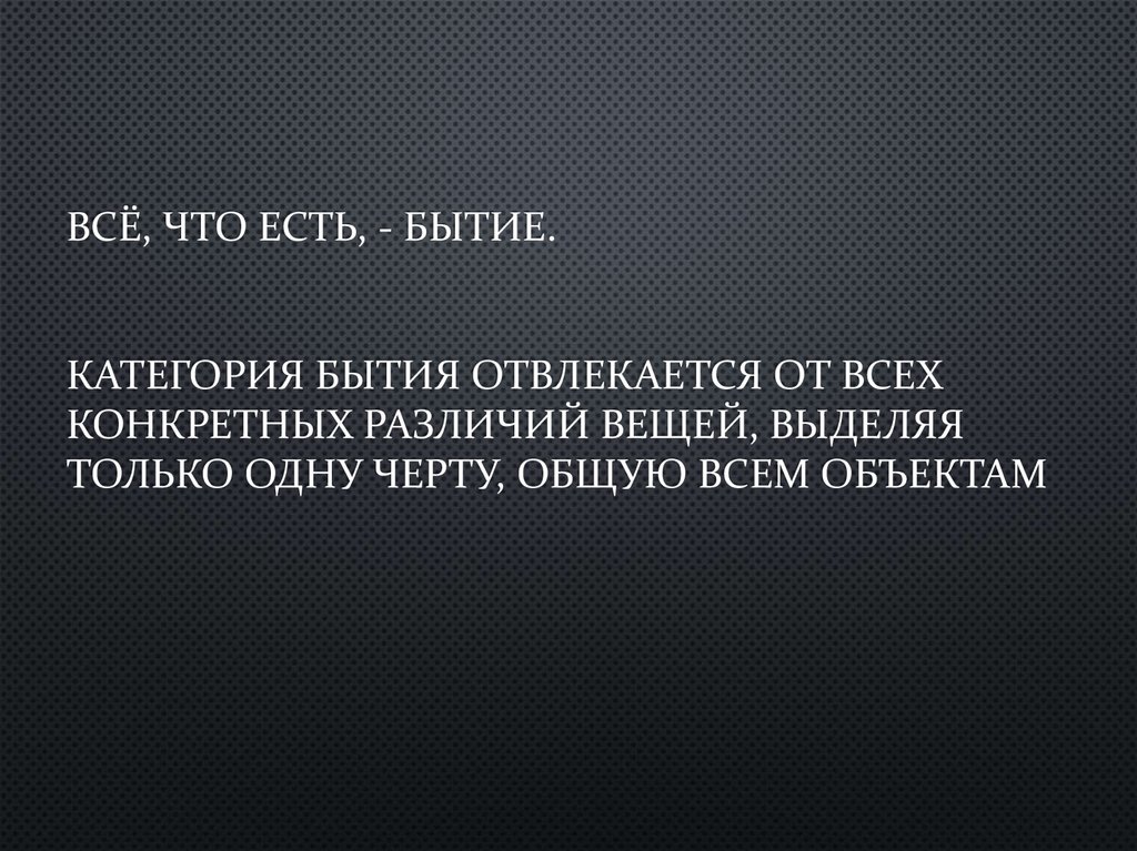 ВСЁ, ЧТО ЕСТЬ, - БЫТИЕ.КАТЕГОРИЯ БЫТИЯ ОТВЛЕКАЕТСЯ ОТ ВСЕХ