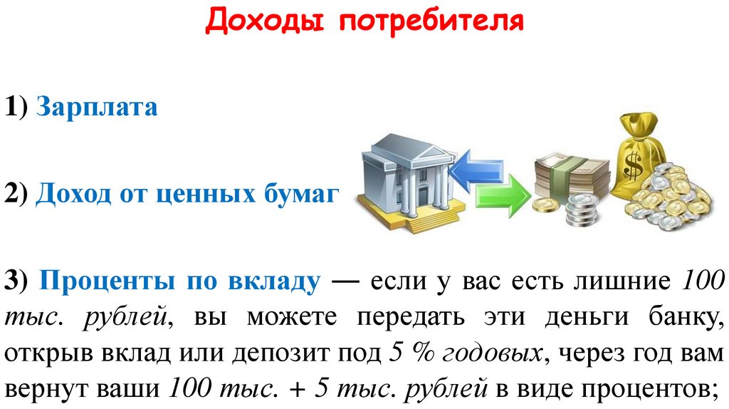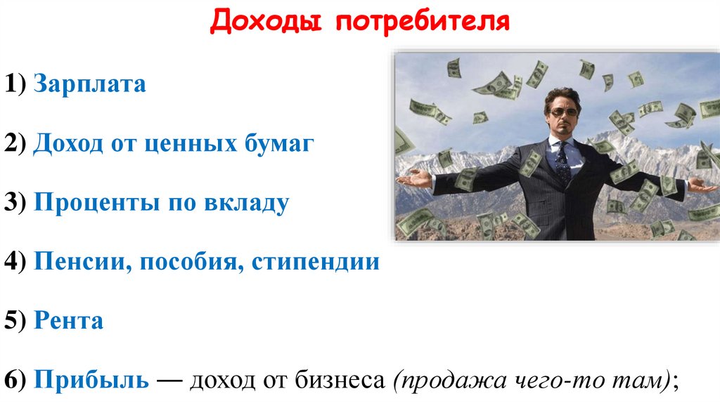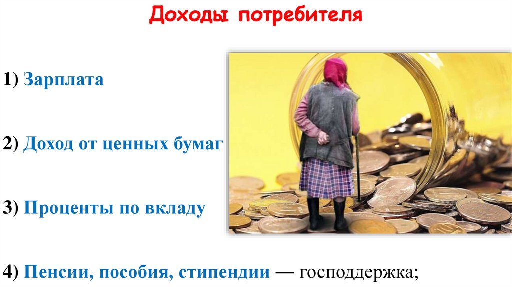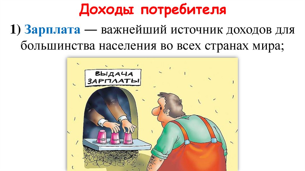 Доходы потребителя1) Зарплата ― важнейший источник доходов для