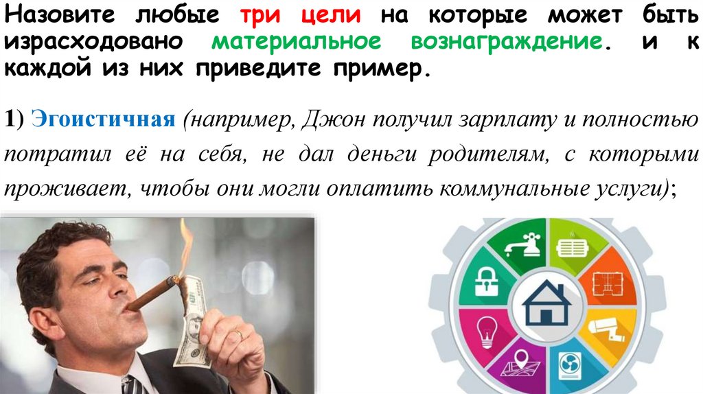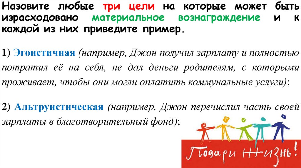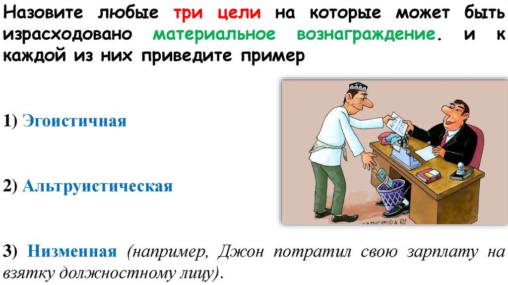 Назовите любые три цели на которые может бытьизрасходовано материальное вознаграждение. и к