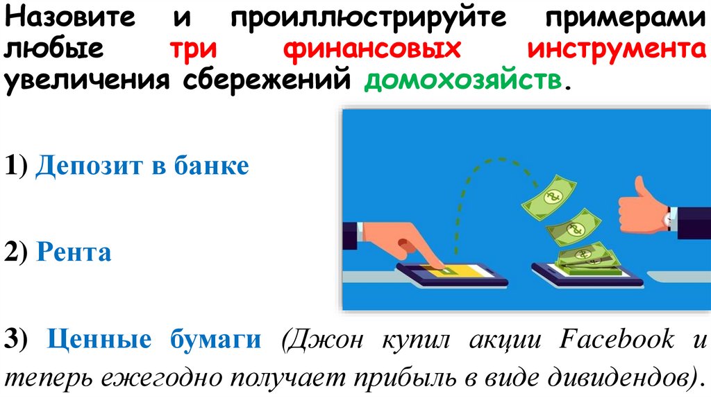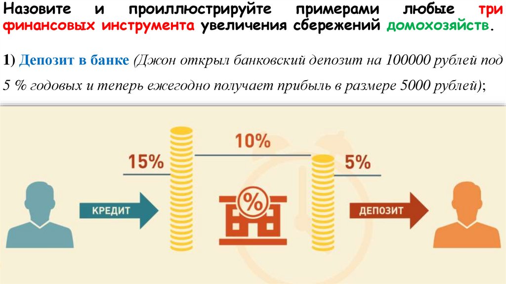1) Депозит в банке (Джон открыл банковский депозит на 100000 рублей под