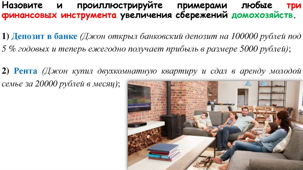 2) Рента (Джон купил двухкомнатную квартиру и сдал в аренду молодой