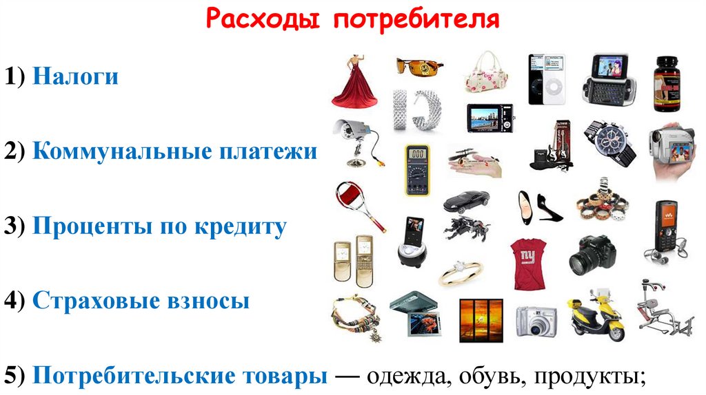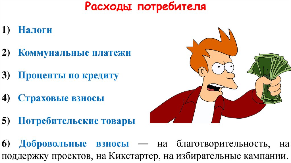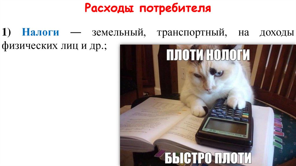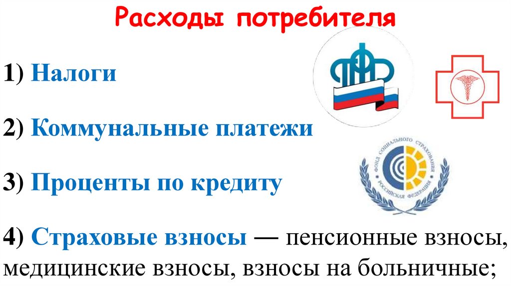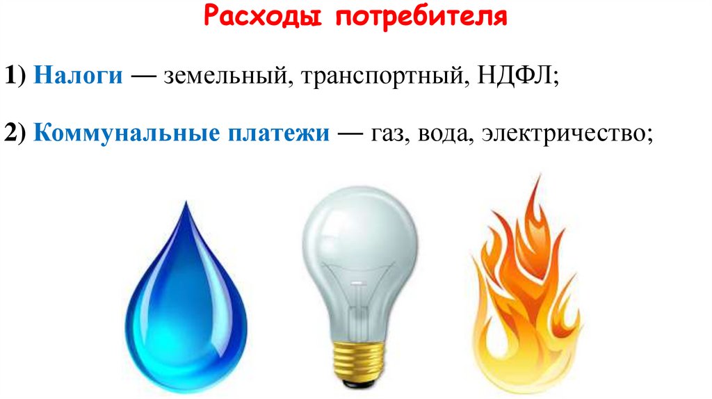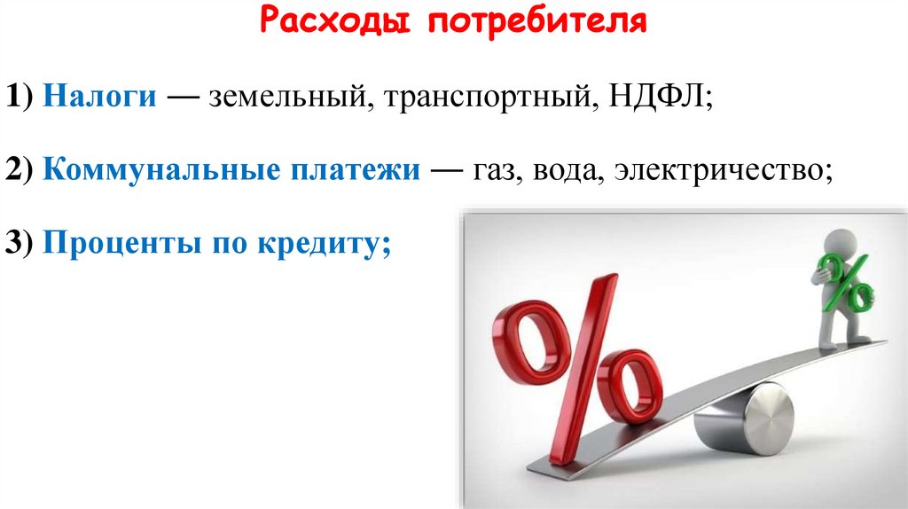 Расходы потребителя1) Налоги ― земельный, транспортный, НДФЛ;