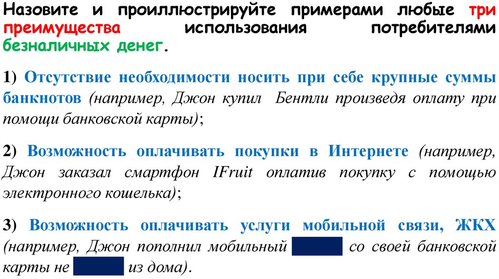 2) Возможность оплачивать покупки в Интернете (например, Джон
