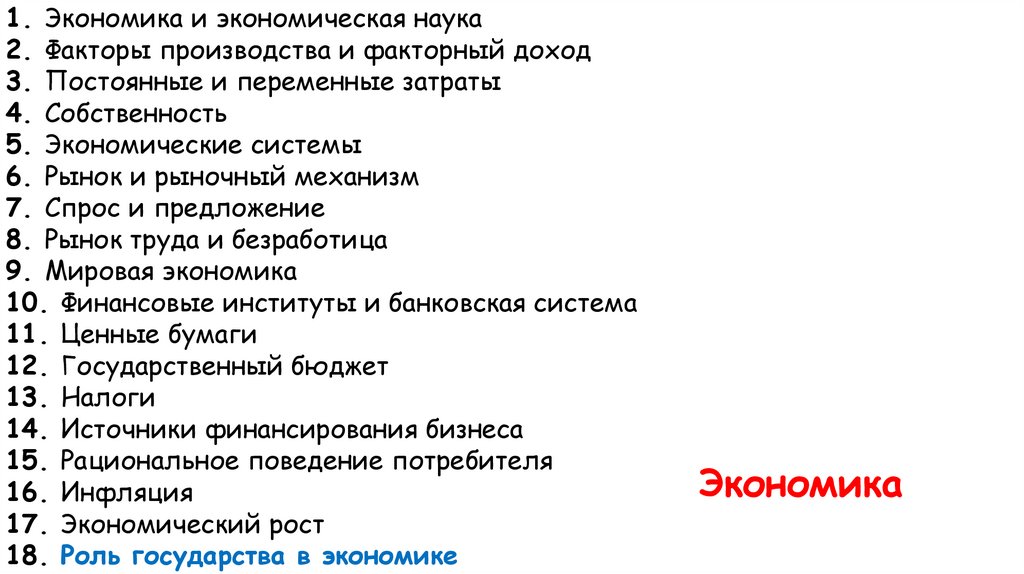 1. Экономика и экономическая наука2. Факторы производства и факторный доход