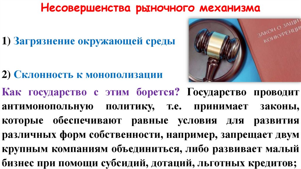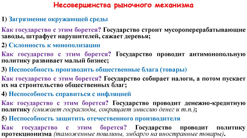1. Несовершенства рыночной экономики игосударство с ними борется