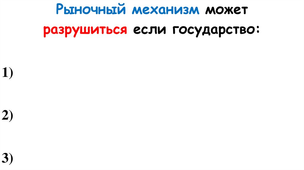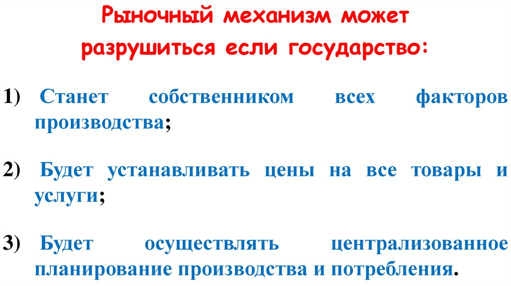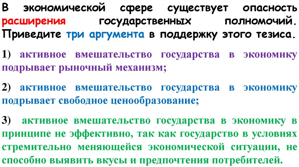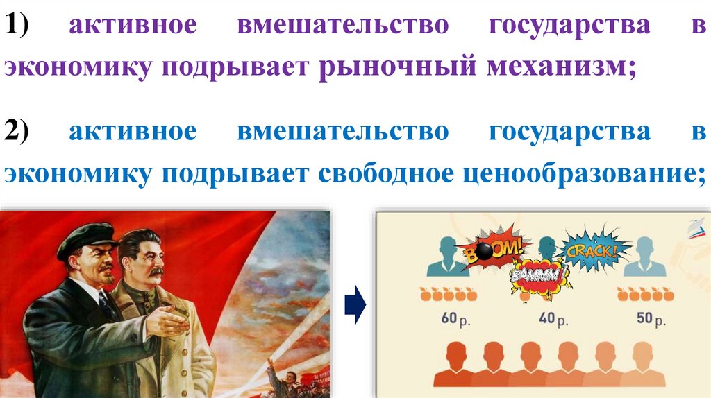 1) активное вмешательство государстваэкономику подрывает рыночный механизм;