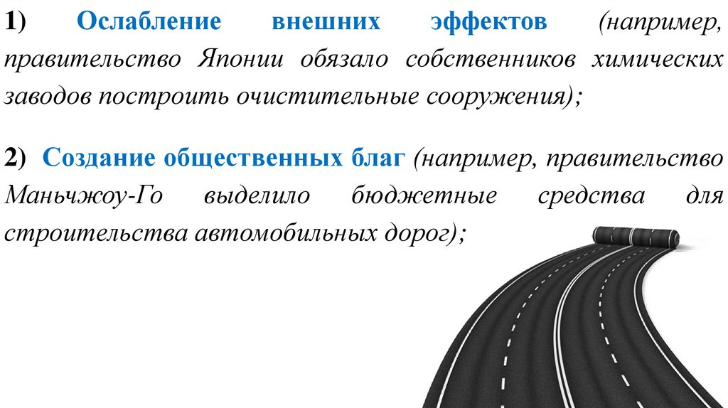2) Создание общественных благ (государство Маньчжоу-Го выделило