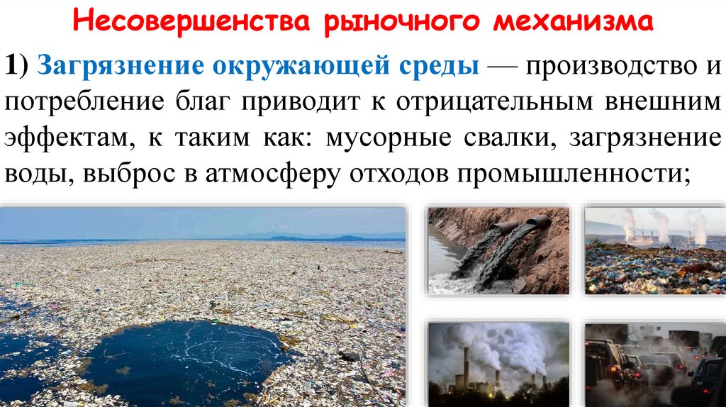Несовершенства рыночного механизма1) Загрязнение окружающей среды