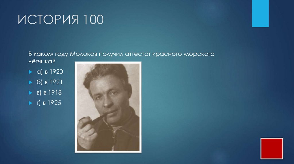 ИСТОРИЯ 100В каком году Молоков получил аттестат красного морского
