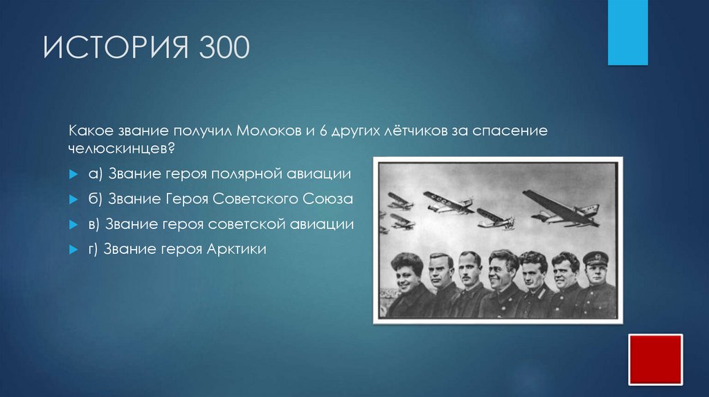 ИСТОРИЯ 300Какое звание получил Молоков и 6 других лётчиков за спасение