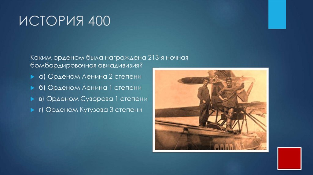 ИСТОРИЯ 400Каким орденом была награждена 213-я ночная