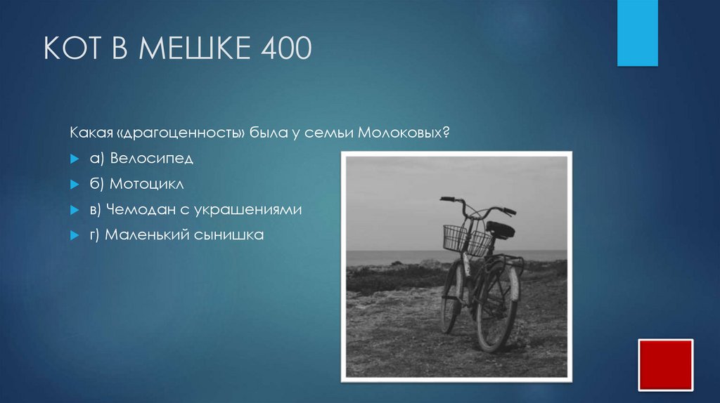 КОТ В МЕШКЕ 400Какая «драгоценность» была у семьи Молоковых?