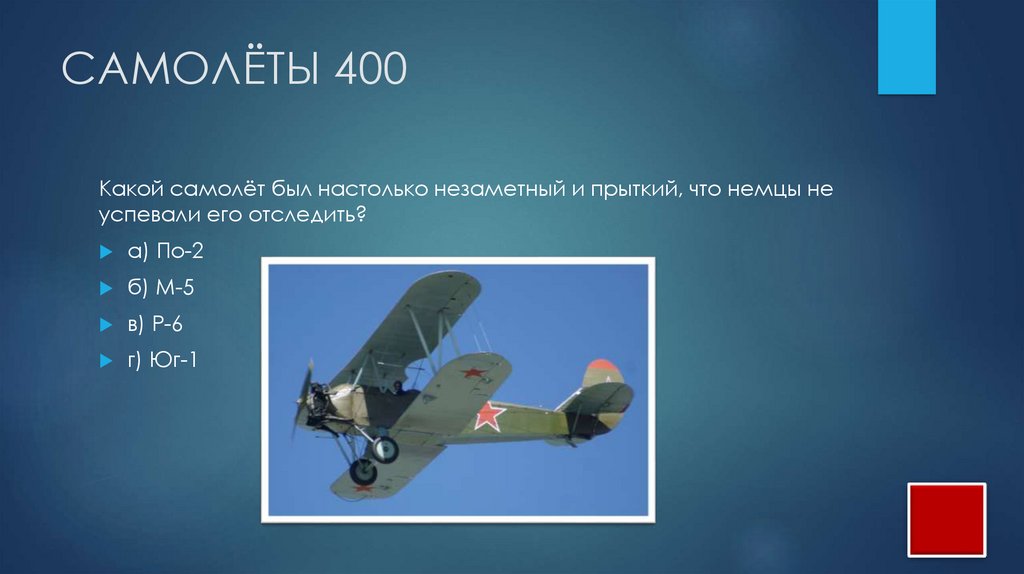 САМОЛЁТЫ 400Какой самолёт был настолько незаметный и прыткий, что немцы не