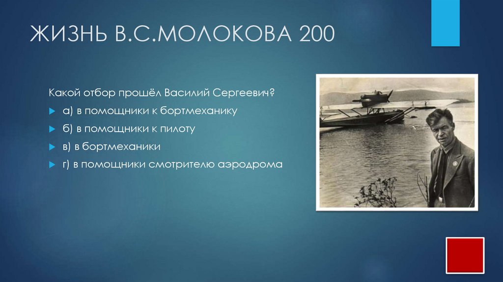 ЖИЗНЬ В.С.МОЛОКОВА 200Какой отбор прошёл Василий Сергеевич?