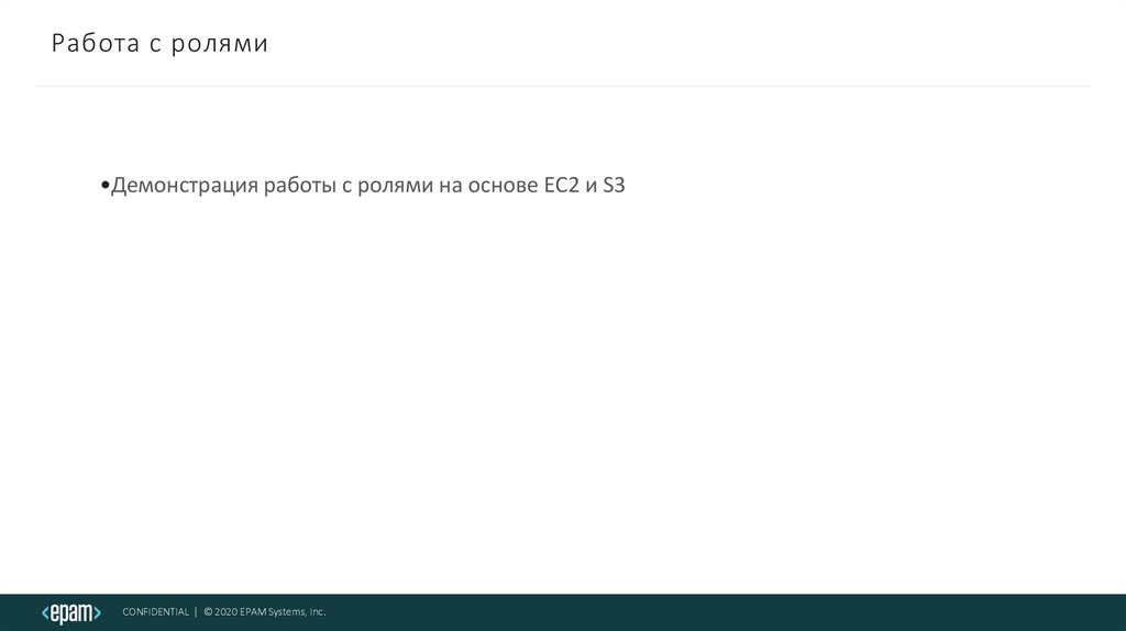 Работа с ролями•Демонстрация работы с ролями на основе EC2 и S3