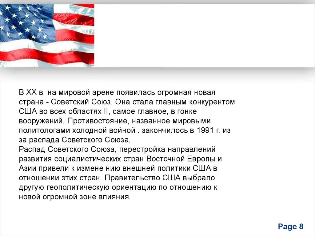 В ХХ в. на мировой арене появилась огромная новаястрана - Советский Союз. Она стала главным конкурентом
