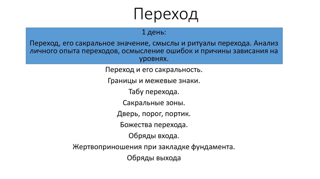 Переход, его сакральное значение, смыслы и ритуалы перехода. Анализ