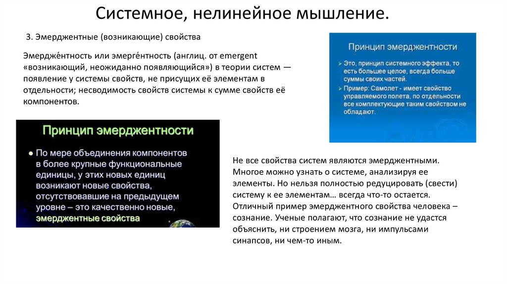 Системное, нелинейное мышление.3. Эмерджентные (возникающие) свойства