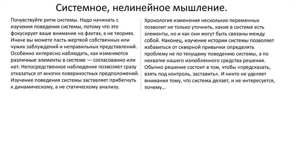 Системное, нелинейное мышление.Почувствуйте ритм системы. Надо начинать с