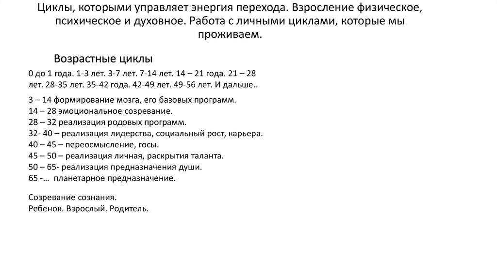 Циклы, которыми управляет энергия перехода. Взросление физическое,психическое и духовное. Работа с личными циклами, которые мы