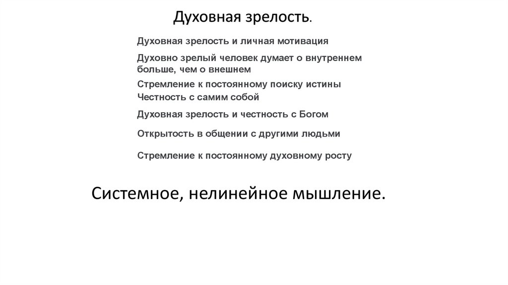 Духовная зрелость.Духовная зрелость и личная мотивация
