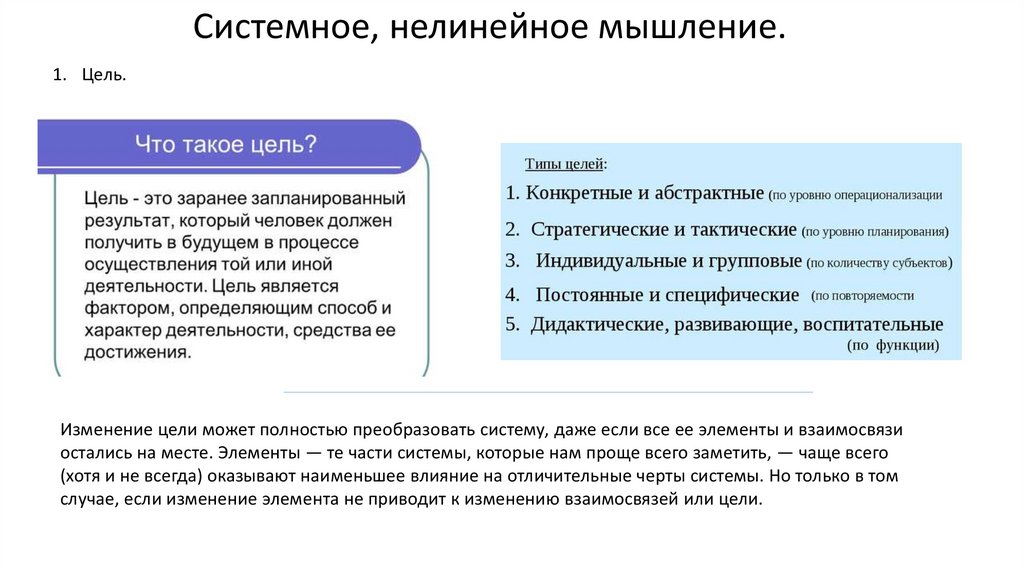 обязательных составляющих: элементы, взаимосвязи и назначение (или цель).