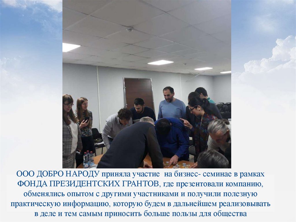 ООО ДОБРО НАРОДУ приняла участие на бизнес- семинае в рамкахФОНДА ПРЕЗИДЕНТСКИХ ГРАНТОВ, где презентовали компанию,