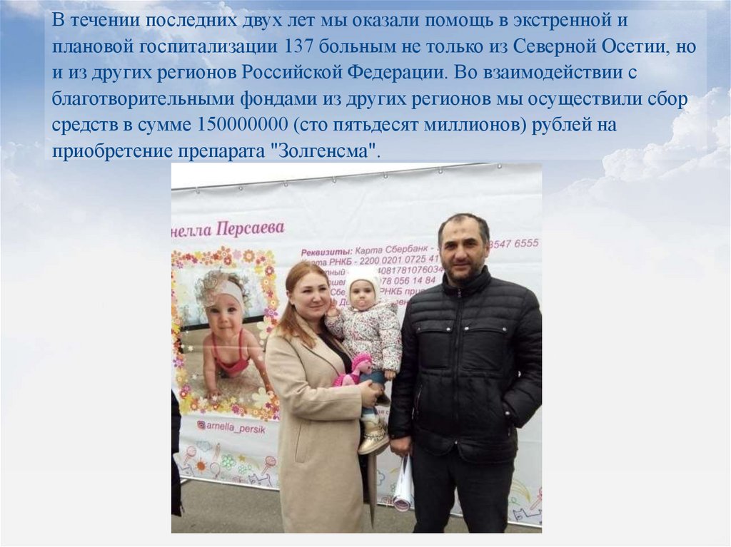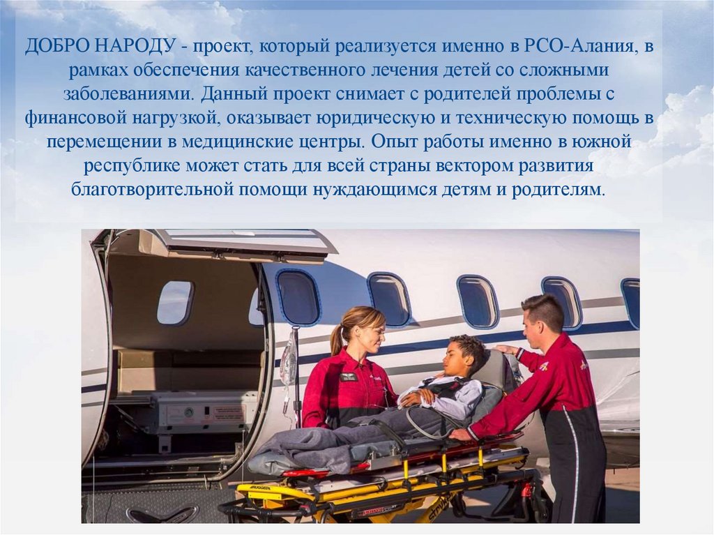 ДОБРО НАРОДУ - проект, который реализуется именно в РСО-Алания, врамках обеспечения качественного лечения детей со сложными