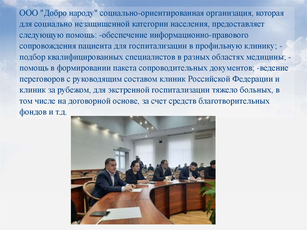 ООО "Добро народу" социально-ориентированная организация, котораядля социально незащищенной категории населения, предоставляет