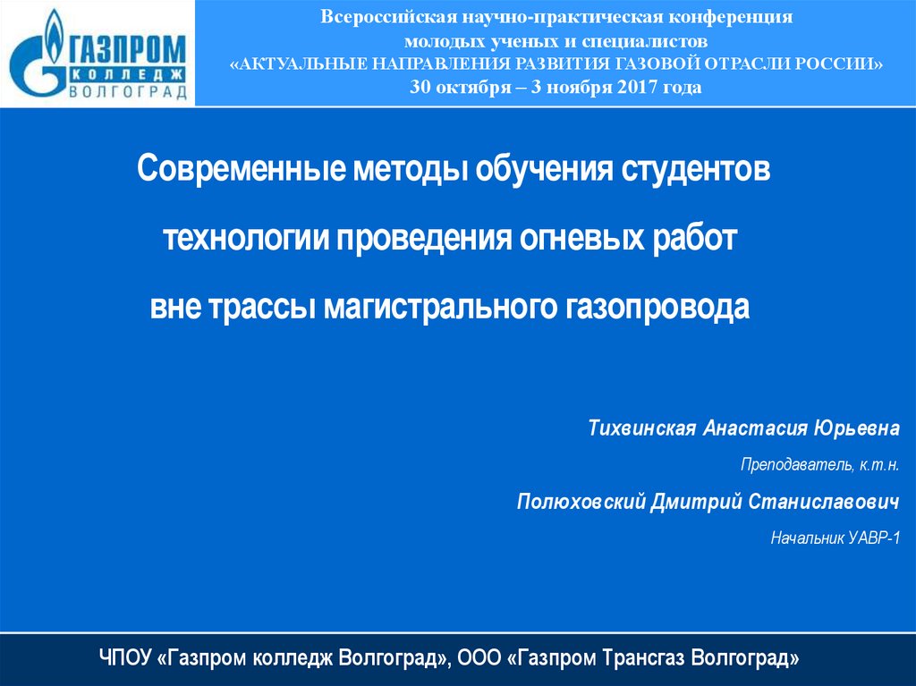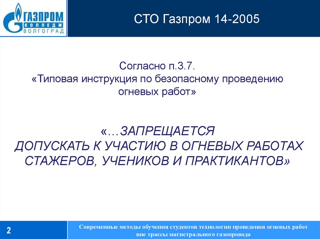 Современные методы обучения студентов технологии проведения огневых работ вне трассы магистрального газопровода
