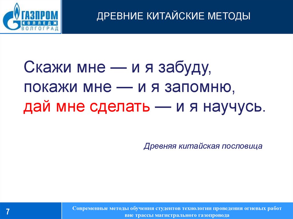 ДРЕВНИЕ КИТАЙСКИЕ МЕТОДЫСкажи мне — и я забуду,