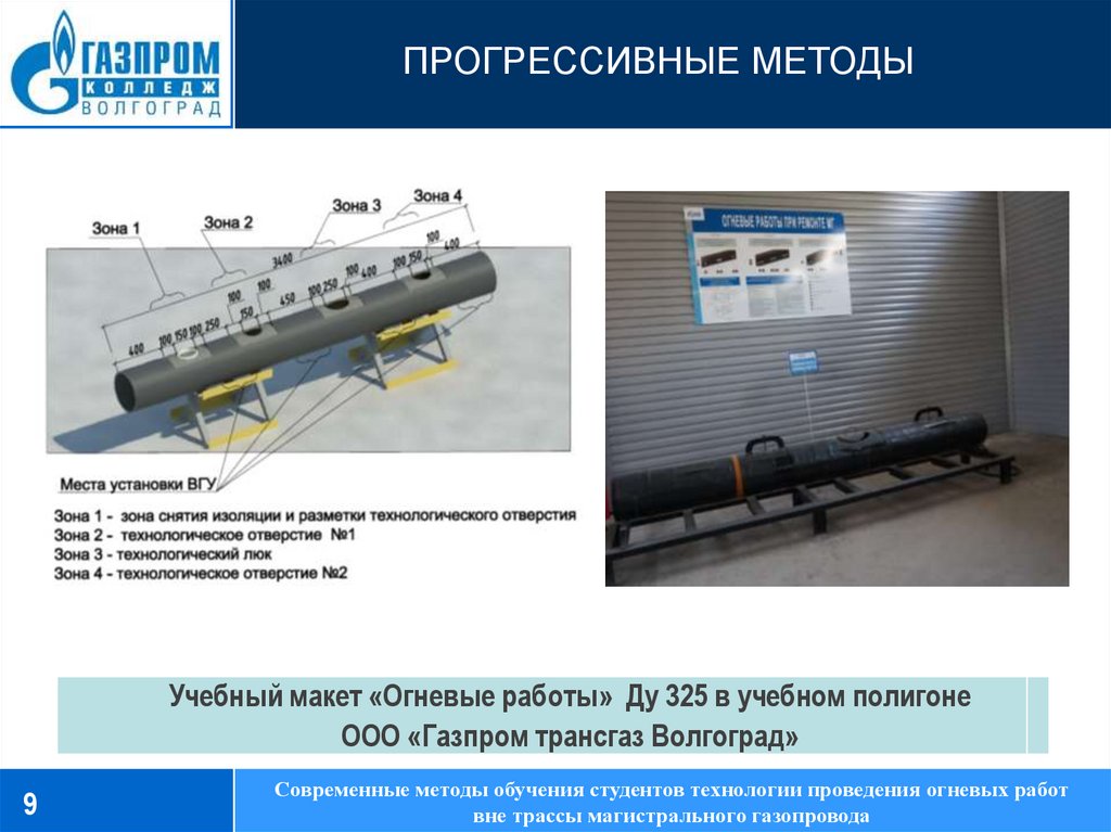 ПРОГРЕССИВНЫЕ МЕТОДЫУчебный макет «Огневые работы» Ду 325 в учебном полигоне