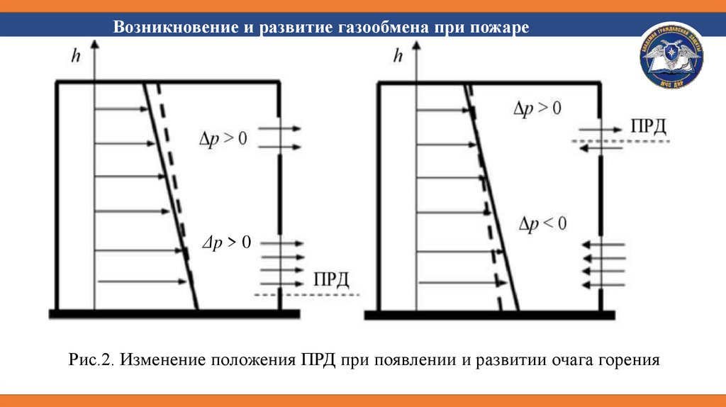 Возникновение и развитие газообмена при пожареΔp > 0