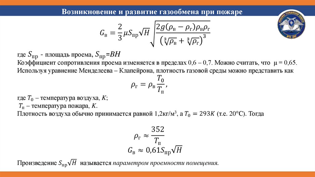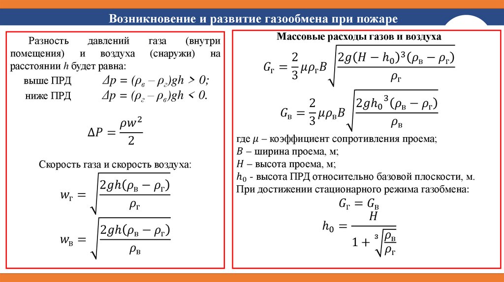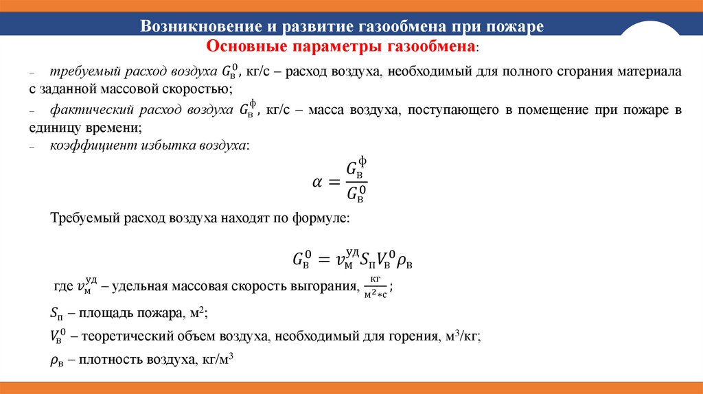 Возникновение и развитие газообмена при пожареОсновные параметры газообмена: