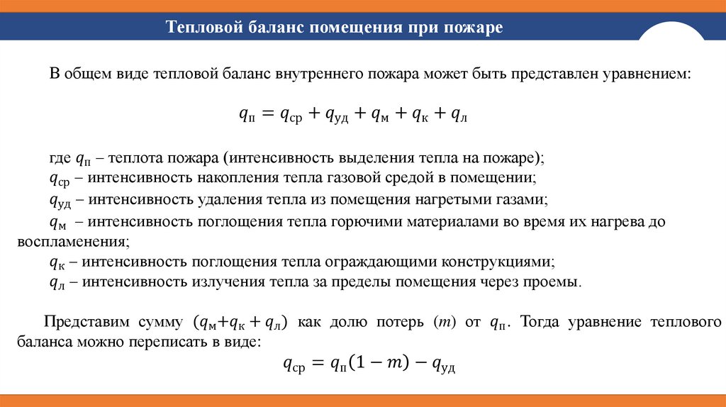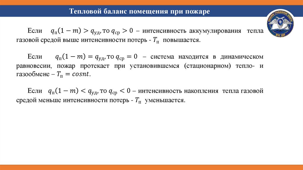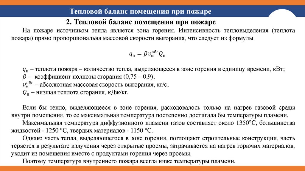 Газо- и теплообмен на внутренних пожарах. Режимы пожаров. Лекция 2