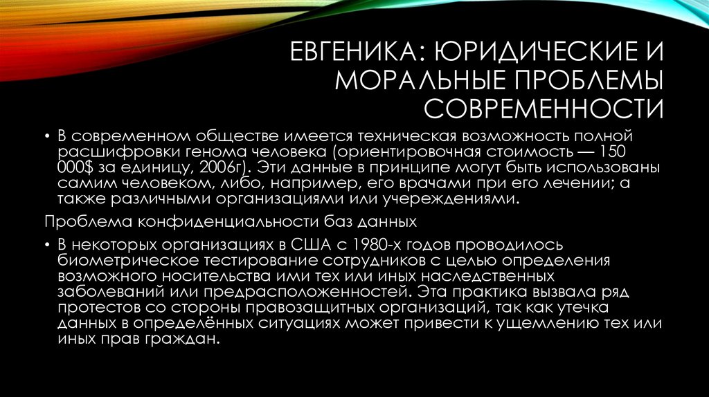 с этими факторами концепция евгеники в отношении человека сегодня