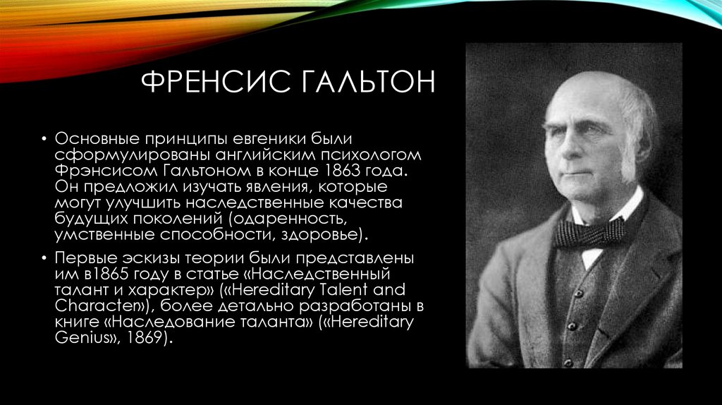 ФРЕНСИС ГАЛЬТОН• Основные принципы евгеники были