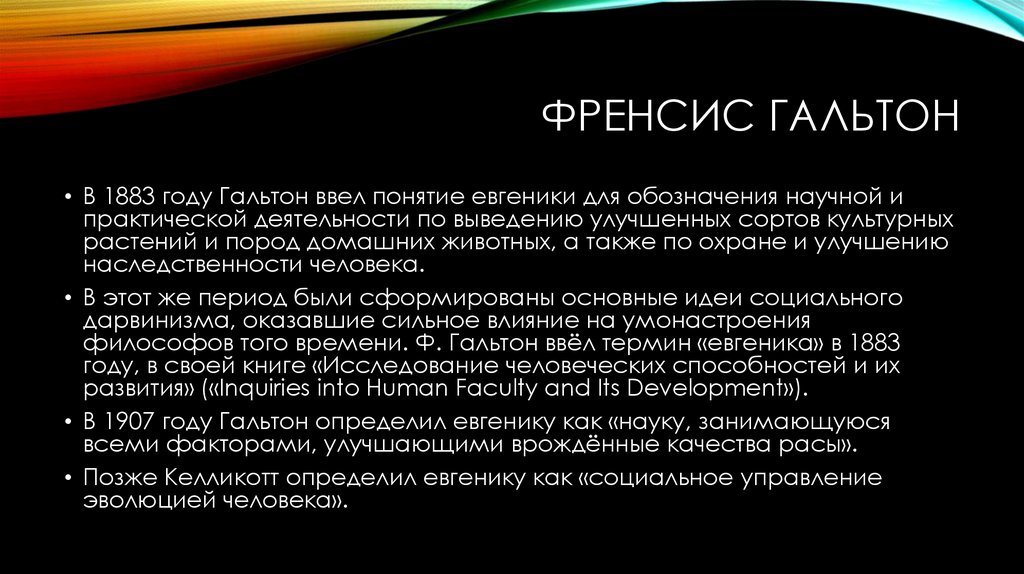 философов того времени. Ф. Гальтон ввёл термин «евгеника» в 1883