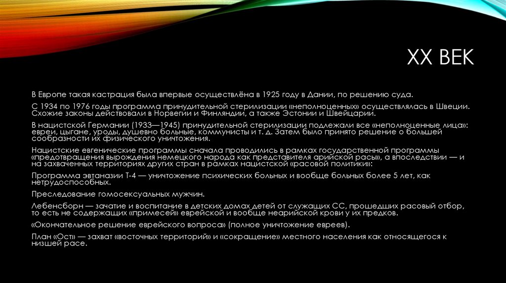 XX ВЕК• Евгенические теории