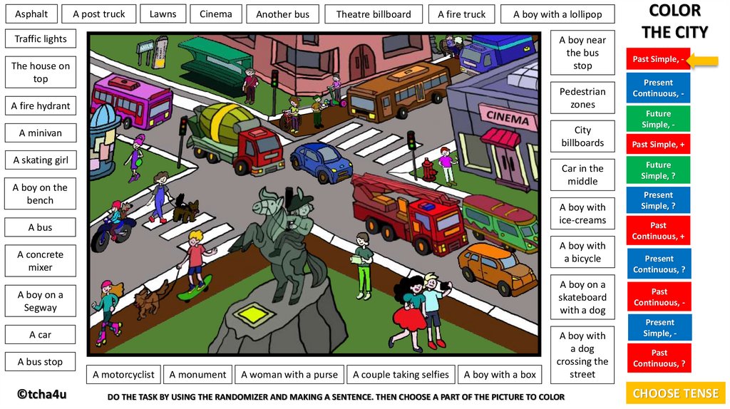Color the city (Simple Tenses, Present Continuous, Past Continuous)