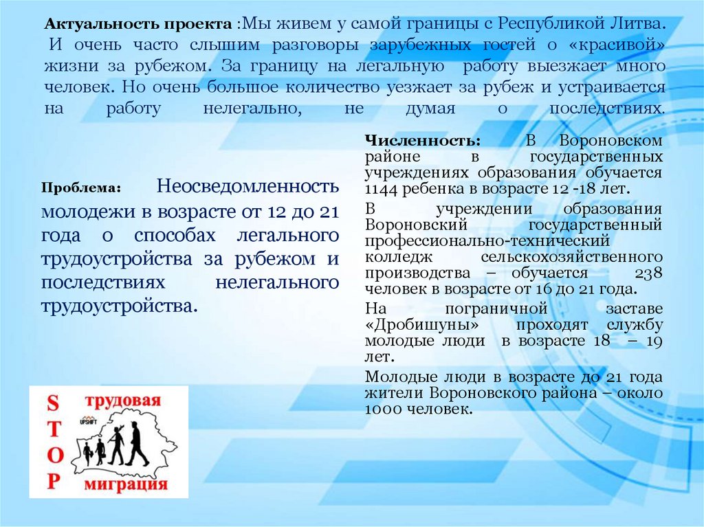 нелегального трудоустройства за рубежом, воспитание у учащихся