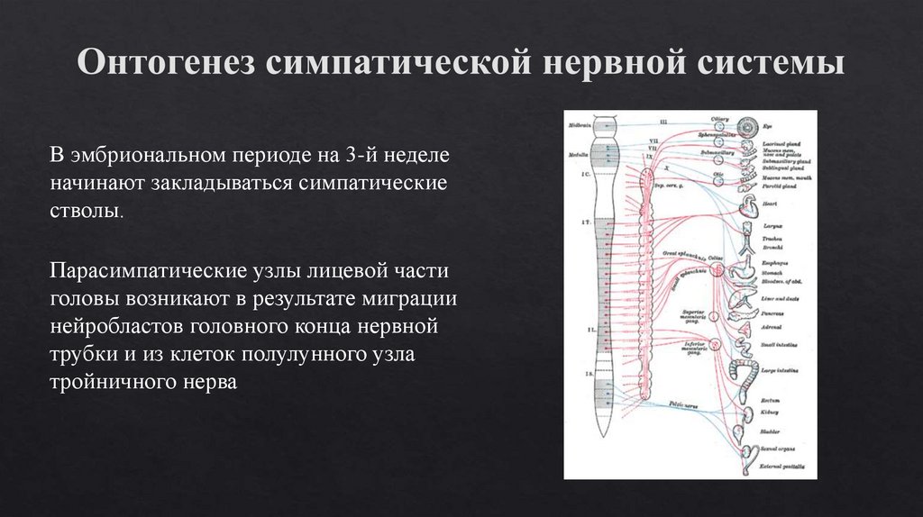 В эмбриональном периоде на 3-й неделеначинают закладываться симпатические