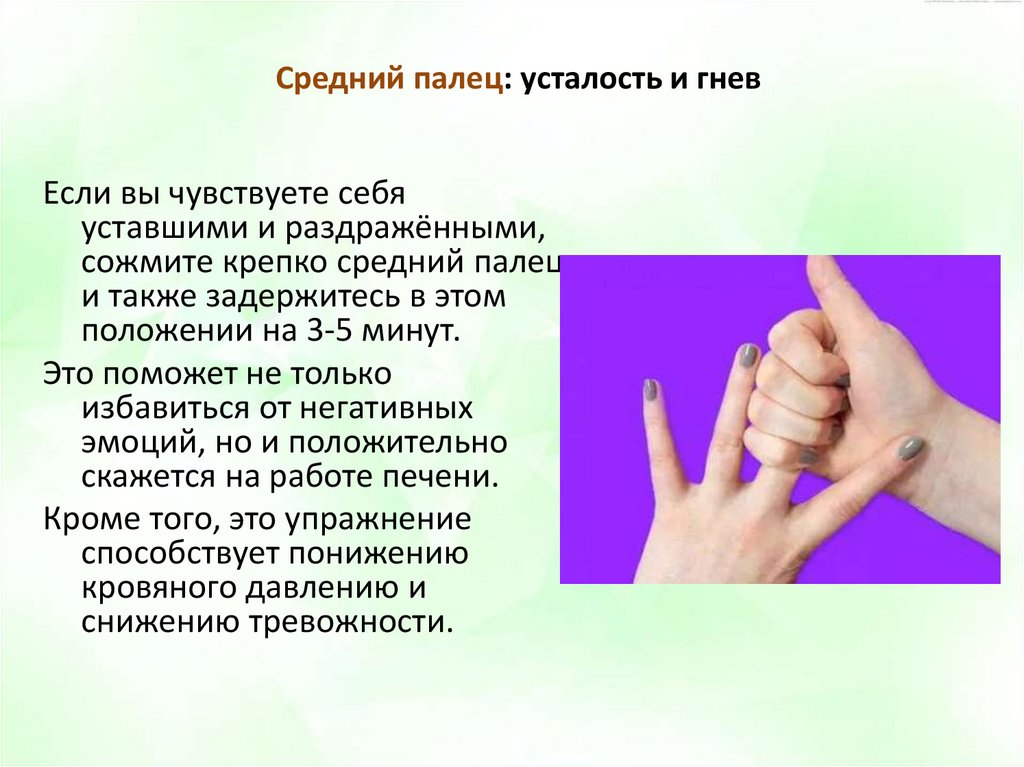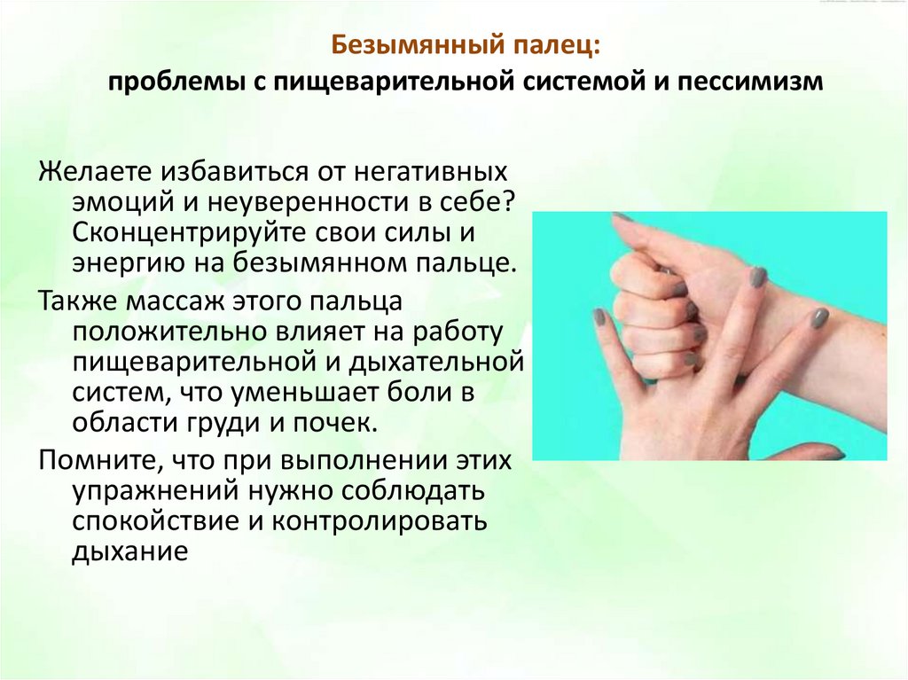Массируя этот палец, сконцентрируйтесь на том, что